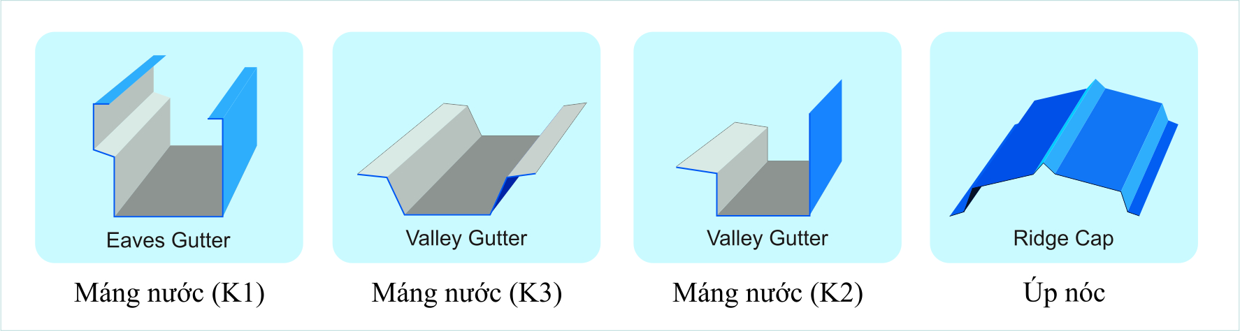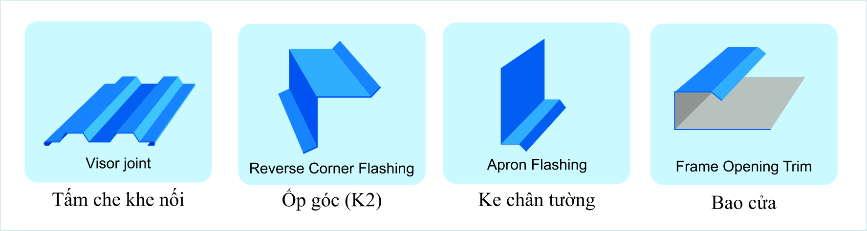 Phụ kiện của Đoàn Minh.,CORP được sản xuất từ vật liệu là tôn lạnh sơn phủ màu cao cấp theo tiêu chuẩn Nhật Bản (JIS G3322). Tiêu chuẩn Úc (AS/NZS 2728). Tiêu chuẩn Châu Âu (BS EN 10169). Tiêu chuẩn Mỹ (ASTM A755). Và TCVN 10356:2014 (ISO 15510:2010) về dòng Inox SUS 304 chất lượng tốt, đáp ứng mọi nhu cầu sử dụng.